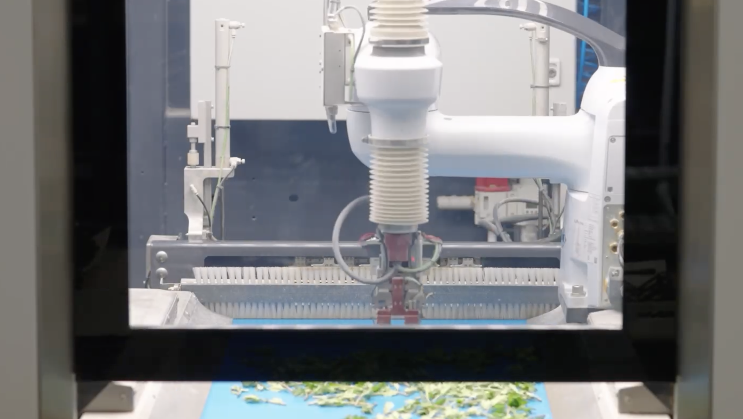 Using the Cutting Planter 4000 is very simple. The operator places the cutting in an unordered manner on the belt. The belt then shakes the cutting loose, allowing individual cuttings to be located. The robot then picks up the cuttings one by one and places them in the renovated cutting bridge. This plug-in bridge ensures that each cutting ends up at the correct length and straight into the plug-in bridge. This plug-in bridge then inserts the cuttings into the medium.