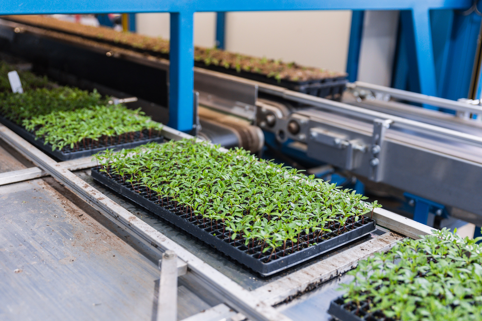 The FlexPlanter extracts plants from the donor tray with our in-house developed plant grippers, assisted by a pusher pin system from below.