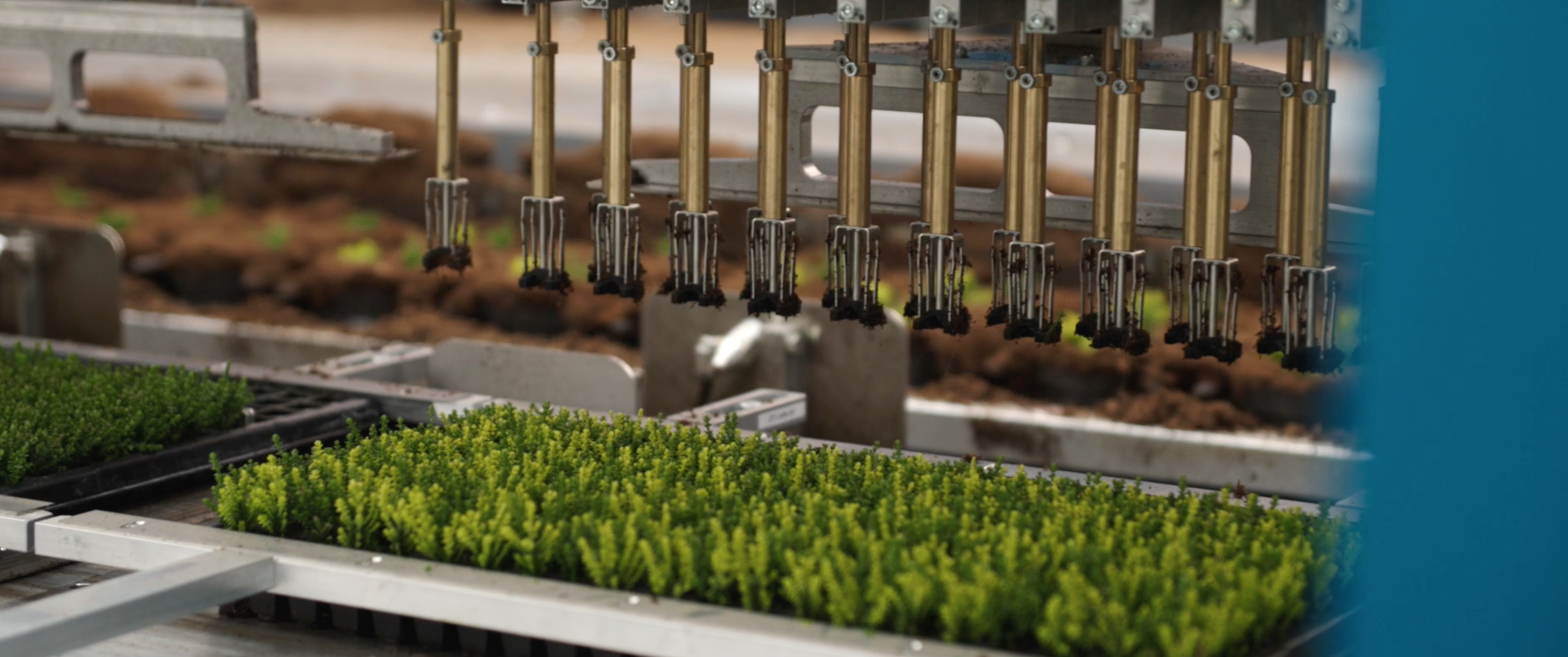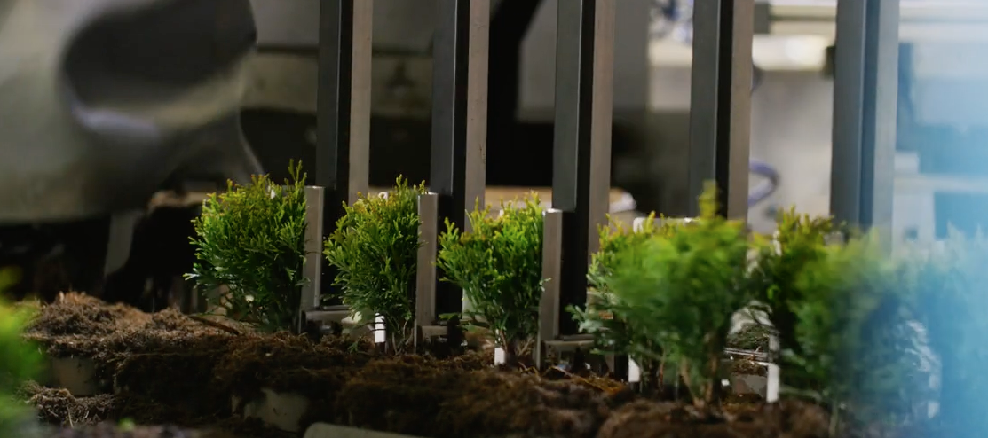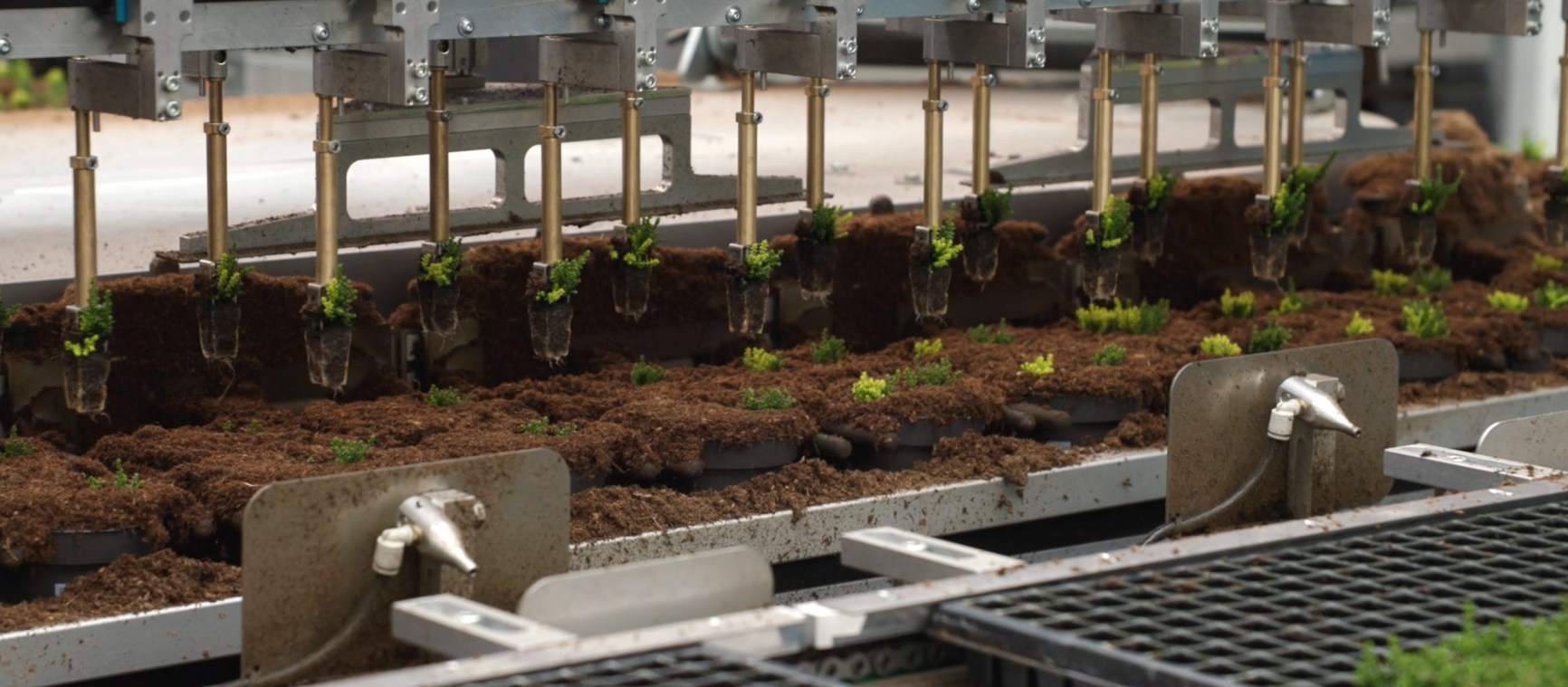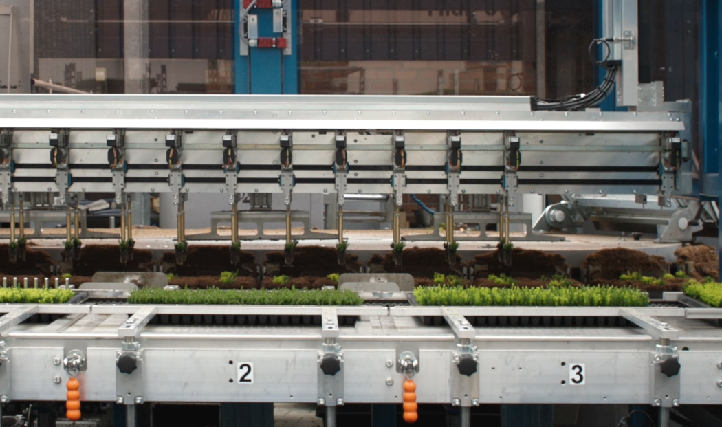 Plants in a linear pottingmachine.